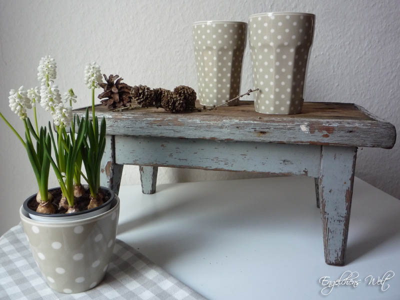 Als Emma und Milli hier waren, sind wir - unter anderem - auch in einem ganz tollen Lädchen in Dangast gewesen ... diese traumhaft-schöne Fußbank hat mich dort inständig gebeten, sie mitzunehmen.